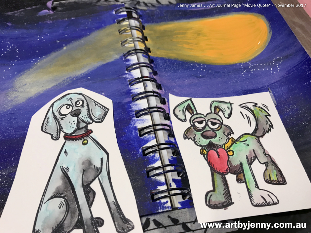 Must Love Dogs ... not only one of my favourite movies but a fun choice to use for this journal page (theme was "movie quote"), especially when put together with Tim's Crazy Dogs. I took it from when Jake was having a chat with the father of his would-be girlfriend (Kate) and says "She was a unique constellation. She was my Halley's Comet."